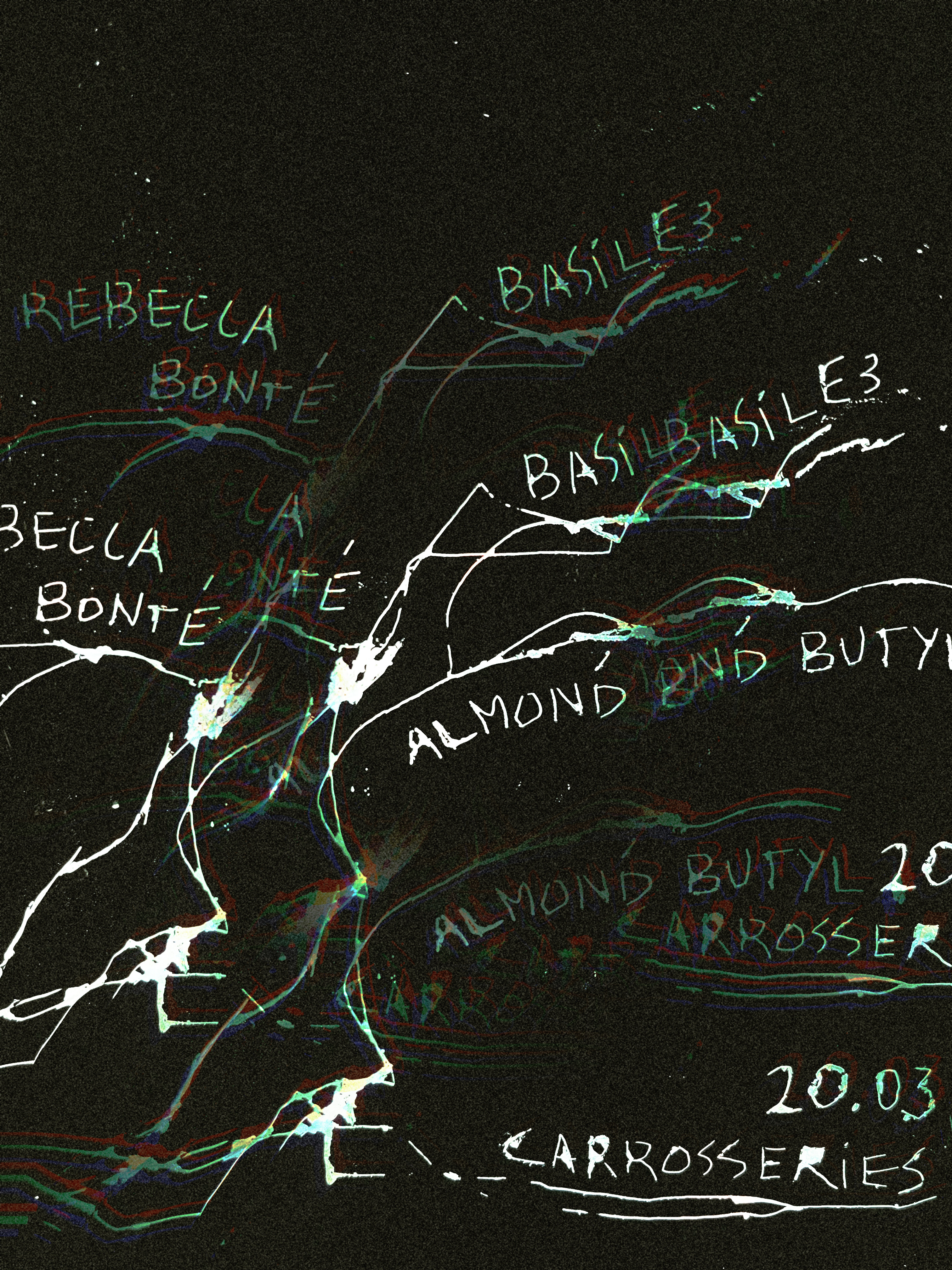 Projet solo de Rébecca, qui fait également partie du duo pop basse fidélité Acte Bonté. Crise esthétique de moitié de vie, intégrant tentatives de cris, strates de bruit et variations de kicks véloces. Chansons pop disjointes principalement guidées par la peur et l'embarras. Son premier album 'Noli me tangere' est sorti en 2024 sur le label français Tanzprocesz.