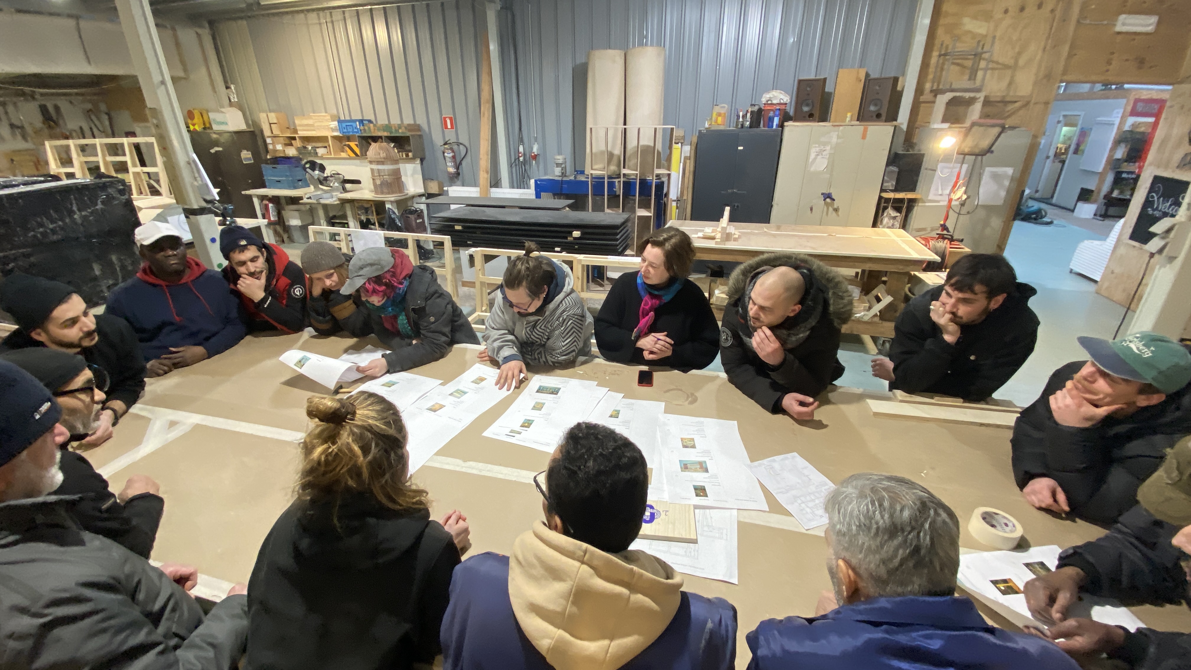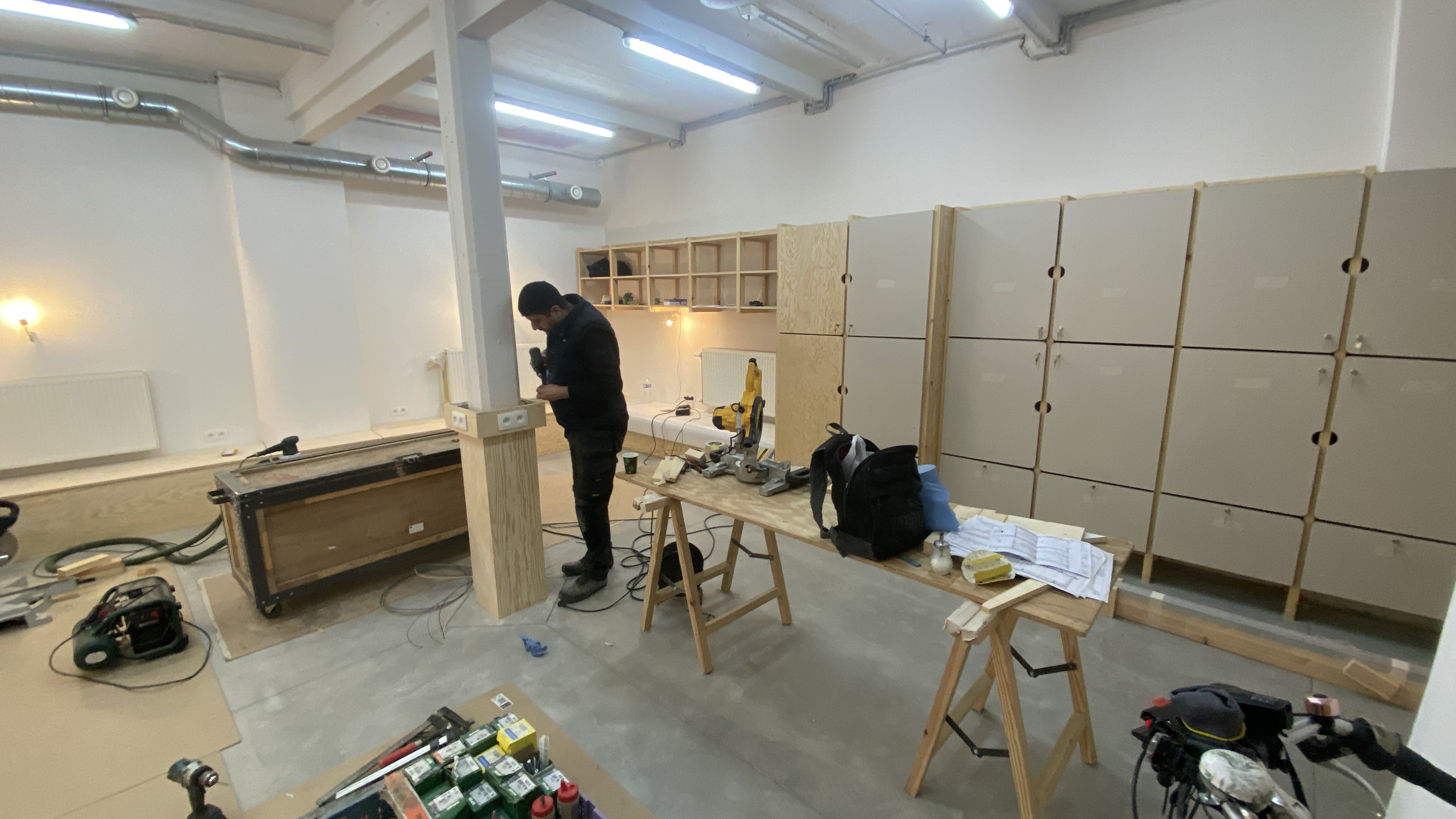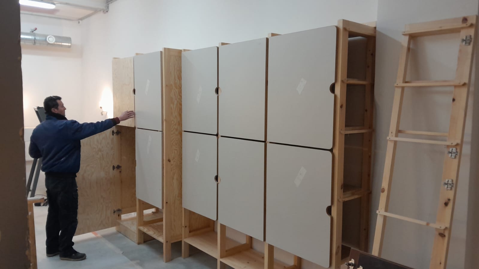 Pour son nouveau lieu d'accueil de personnes réfugiées, rue d'Ophem 54, l’association nous a confié la réalisation de l'entièreté des mobiliers. Des étagères en sapin, aux bancs en bois de réemploi, de la cuisine aux mobiliers multifonction, l'atelier de menuiserie a tout donné pour que ce lieu important ouvre le plus tôt possible ce mois de janvier 2025.