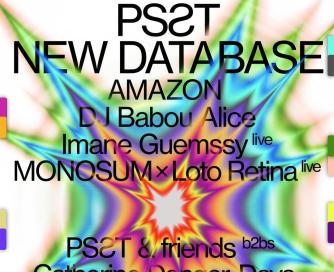 PSST NEW DATABASE RELEASE w/ AMAZON + DJ BABOU ALICE + IMANE GUEMSSY (LIVE) + PSƧT & FRIENDS B2BS (CATHERINE DANGER + DAYA + GEM&I + GOMAR + DJ JHAYA + LOURDES + MIKA OKI + OJOO) + MONOSUM X LOTO RETINA (LIVE)
